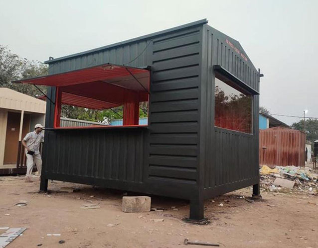 Saleable items whether it is FMCG, pan, tea, café-coffee, dairy or any food vendor small entrepreneur requires a small space to store and run a business. Portable shop cabin offers a better option in a least budget.